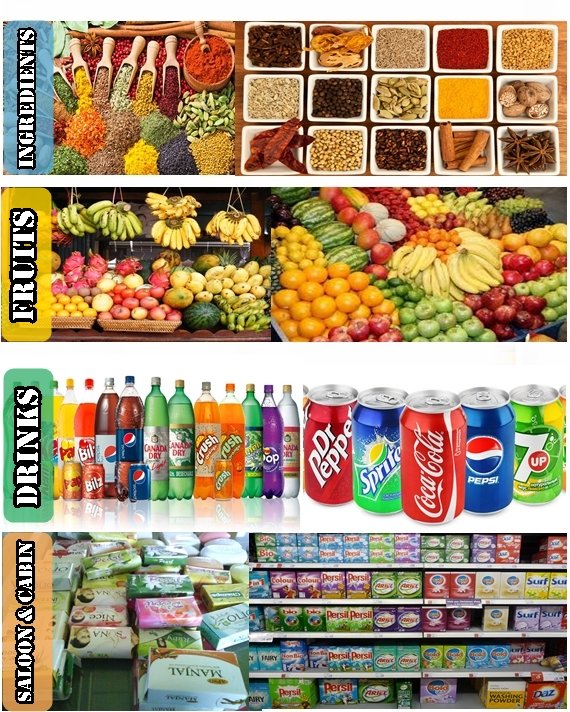 Fresh, frozen, and dry provisions along with bonded stores such as cigarettes, beverages, and confectionery items.